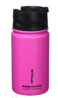 Fifty/Fifty V12004PK0 12oz Pink Double Wall Vacuum Insulated Stainless Steel Water Bottle / Travel Coffee Mug, (Wide Mouth Flip Cap), 1 Pack