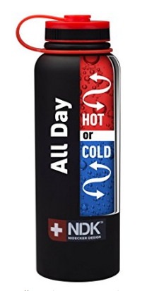 The nidecker design double wall Vacuum 18/8 stainless steel bottles will keep your beverages hot or cold on the go; all day long. Keeps cold beverages ice cold for up to 24 hours and hot beverages steaming for up to 12 hours. All ndk nidecker hydration bottles and mugs are leak proof with air tight lids. Always BPA free and FDA approved; enjoy the security and quality of Swiss designed craftsmanship. Enjoy!!!